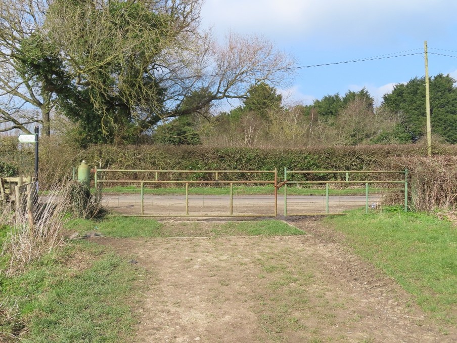 Further along the lane there are two more cylinders and a gate. In due course, this may become the entrance to the planned cricket ground.